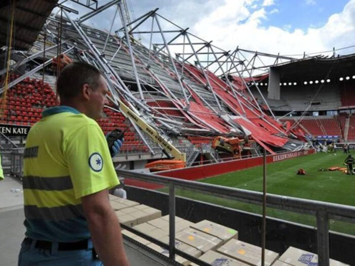 Op donderdag 7 juli 2011 stortte tijdens werkzaamheden een deel van het dak van de nieuwbouw in. Hierbij vielen twee doden en 14 gewonden. De instorting vond plaats aan de korte kant van het stadion, waar onder andere gebouwd werd aan de dakconstructie. Het gedeelte waar de tweede ring al afgebouwd was is niet ingestort. Oorzaak van het instorten was het niet onderkennen van de risico’s door het ontbreken van essentiële onderdelen van de dakconstructie. Op 7 juli 2012 werd er op de plaats waar het ongeluk gebeurde een monument met de titel Ineens was het stil onthuld.